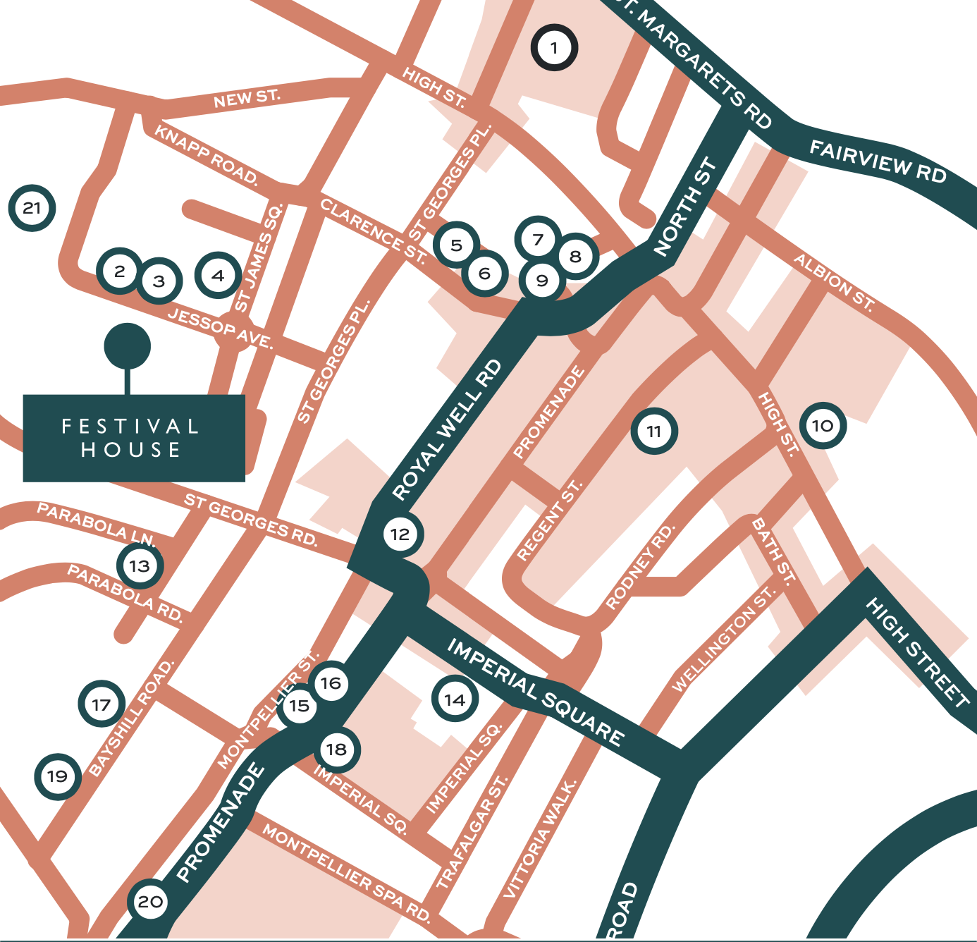 Not everyone in Cheltenham travels by horseback. Outside the Festival House front door you’ll find on-site parking and cycle paths. Take a short walk to the Royal Well bus station and the Cheltenham Spa rail station or step out for excellent retail and leisure on the High Street or the prestigious Montpellier and Promenade shopping areas.
